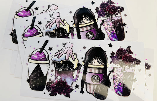 Uv Dtf transfer Wednesday glass design