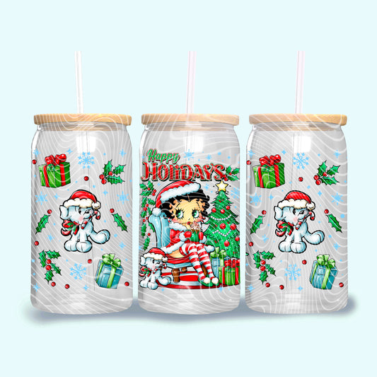 Happy Boop Holidays 16 oz Glass Can Wrap