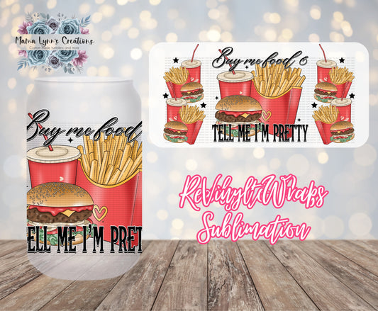 Buy Me Food & Tell Me I'm Pretty 16 oz Glass Can Wrap