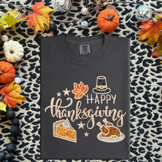 Happy Thanksgiving Faux Embroidery DTF Print
