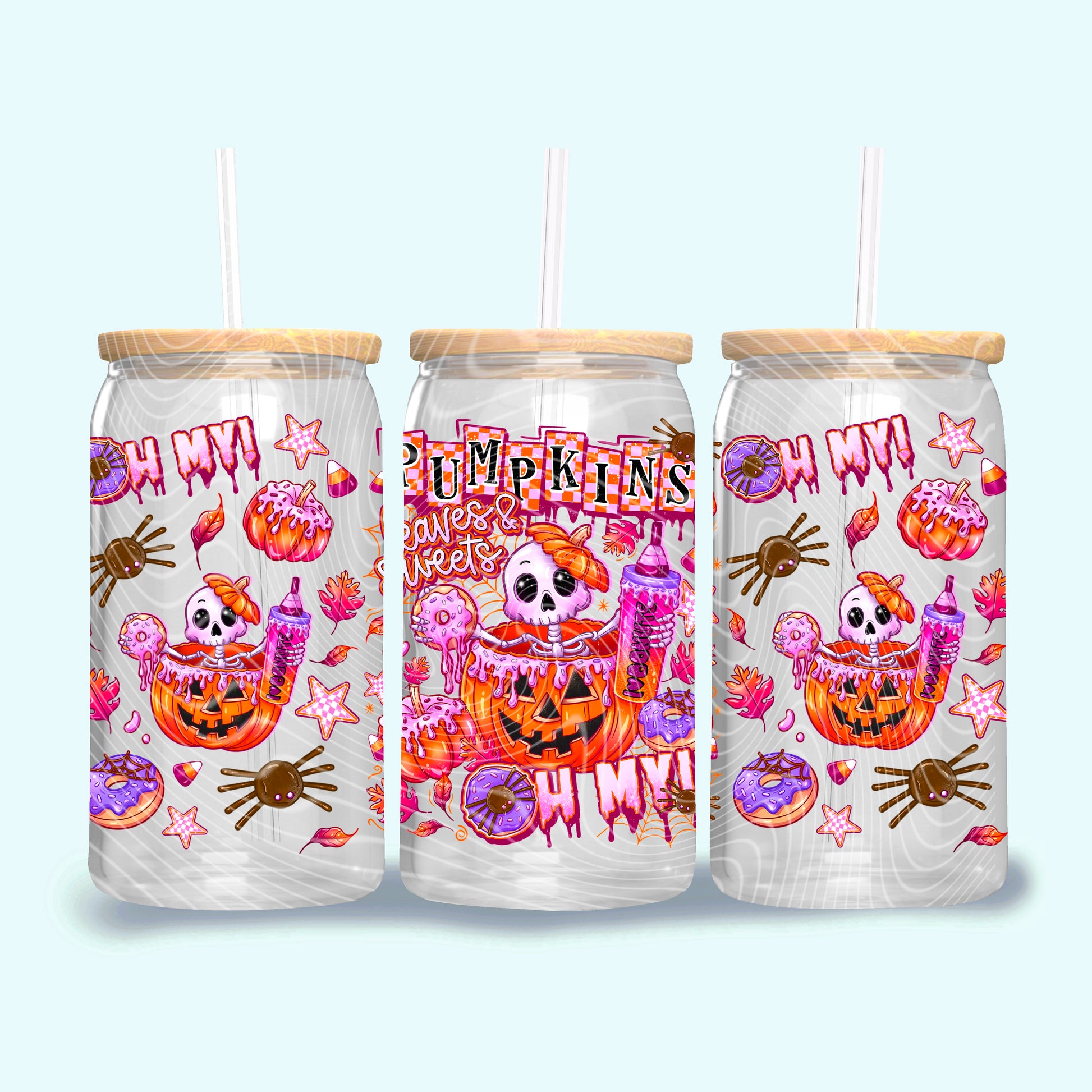 Pumpkins Leaves and Sweets 16 oz Glass Wraps